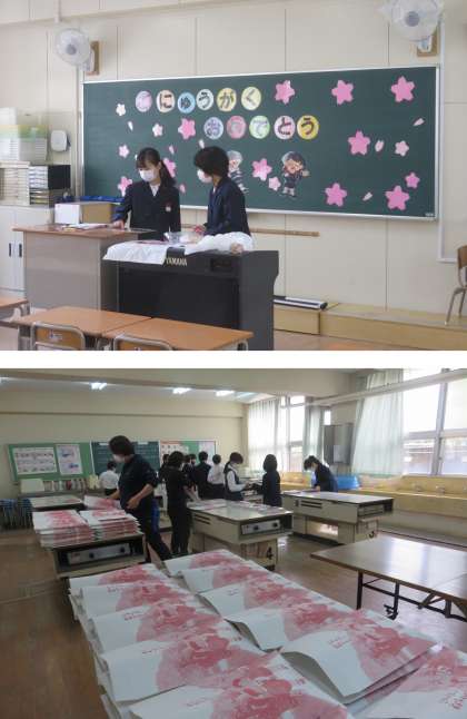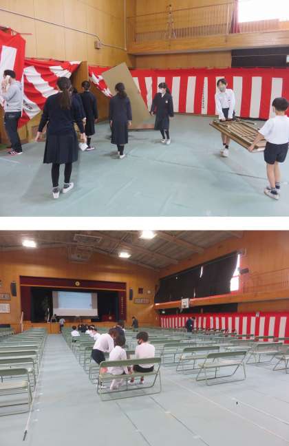 今日は、新6年生が学校に来て、明日の入学式の準備をしてくれました。