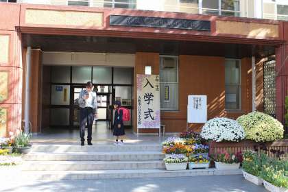 玄関での写真は、入学式のあとはすごく混んでいたので、少し時間をずらすと待たずに撮れると思います。