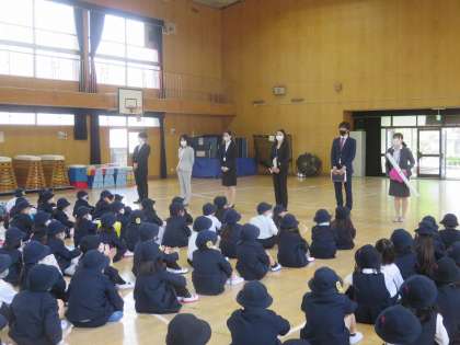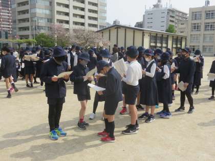 最後は、学年ごとに集まって、担任の先生が自己紹介をしたりクラス発表をしたりしました。