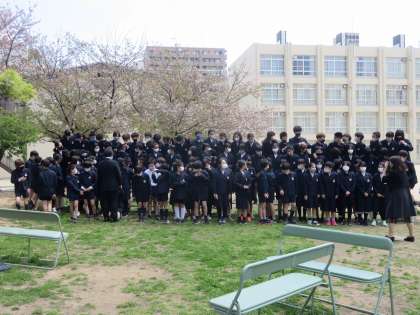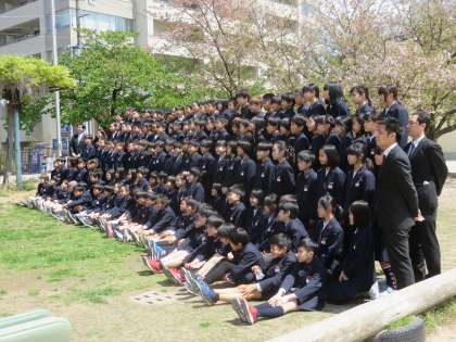 学級写真が終わったあとに、6年生の学年全員での写真を撮りました。