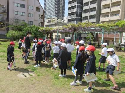 2年生が、生活科で「春を見つけよう!」の勉強をしていました。