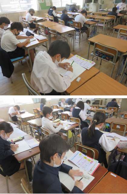 どのクラスも、プリントに取り組んだり、漢ド・計ド、読書など、自分たちだけでできることを考えて、黙々と取り組んでいました。