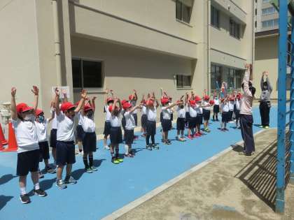 日吉小では、学校にいる間、少しの時間ですが、どの学年にも体を動かせる時間を取るようにしています。(体育という訳にはいきませんが・・)