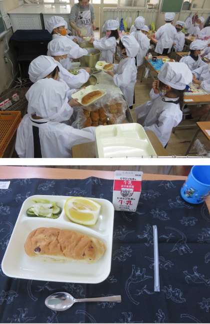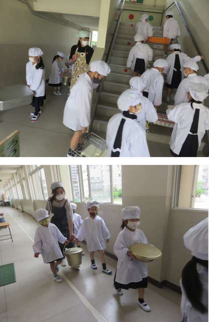 給食の準備ですが、始めは6年生にも手伝ってもらっていましたが、今ではほぼ自分だちだけでできるようになりました。