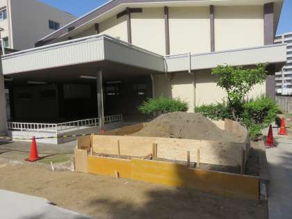 2年がかりで行っていますが、最終的にはこの場所に駐輪場を作り、体育施設開放などで学校に来られた方が使用できるように考えています。