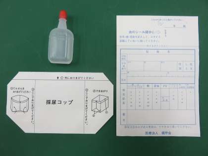本日、上記3点(スポイト容器・採尿コップ・検査袋)を子どもに持ち帰らせています。