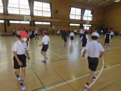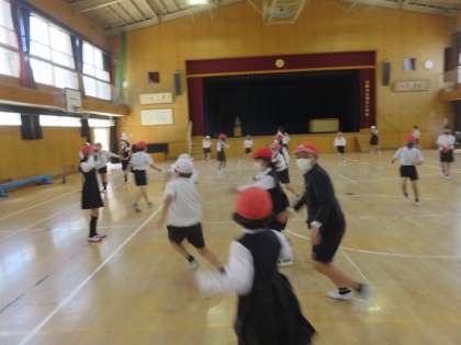 4年生が、いろいろなルールでゲームをしたり「鬼ごっこ」をしたりして、体を動かしていました。