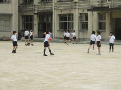 子どもたちは、10分の休み時間でも外に出て、思い思いに過ごしています。