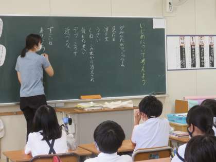 その後、各教室では、学年に応じた話を先生がしたり、クラスで話し合ったりしました。