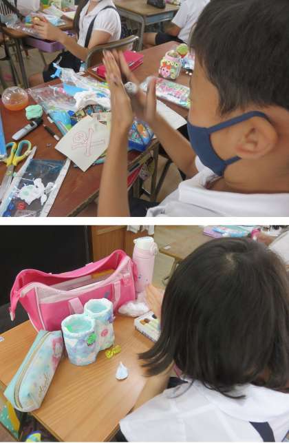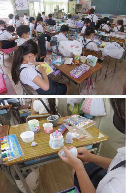 3年生が図工の時間に、楽しそうに何かを作っていました。