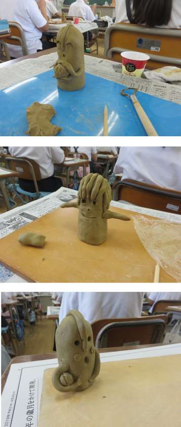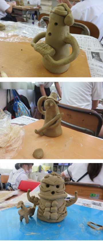 子どもたちのアイディアで、いろいろな埴輪ができ上りました!!