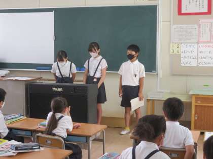 今日の朝の時間に、代表委員会の児童が各教室を回って、めあてを紹介しました。
