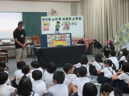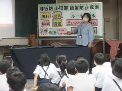 今日は、『なんばサポートセンター』から職員の方に来ていただき、5年生の子どもたちへ“非行防止”についての話をしていただきました。