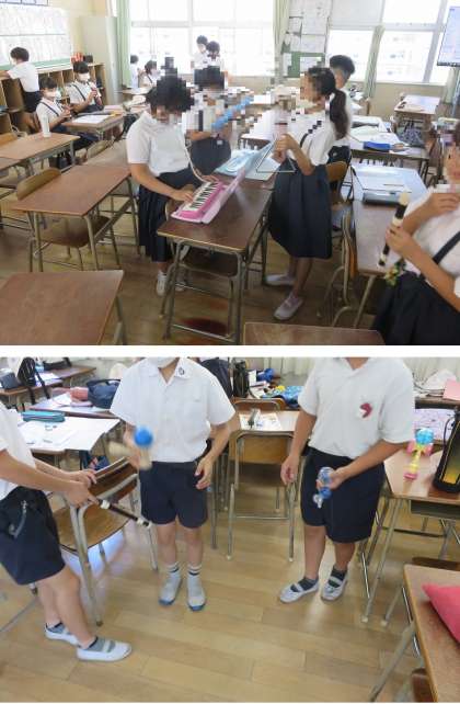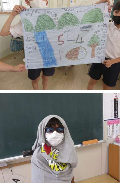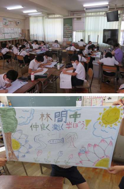 夏休みの宿題に取り組んだり、キャンプファイヤーの出し物を練習したり、学級の旗を作ったり・・