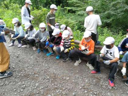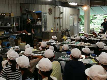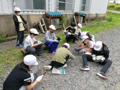 宿舎の方から説明を聞いたあと、さっそく焼き板作りを始めました。