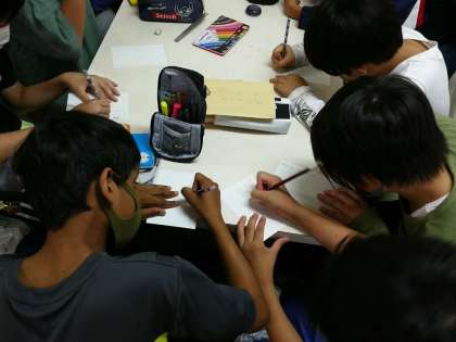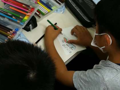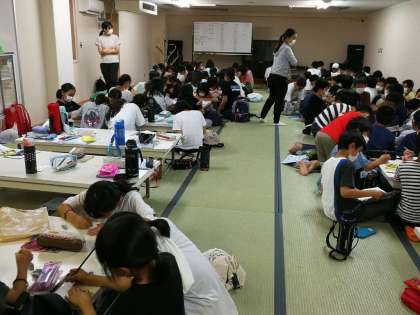 その時間を利用して、お風呂に入っていないクラスは、ハガキを書く時間にしました。