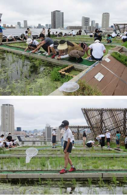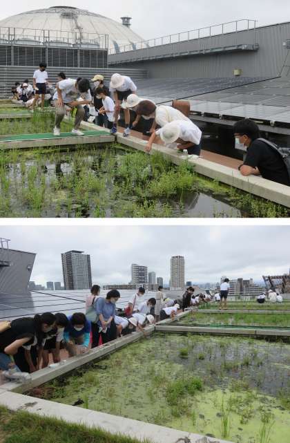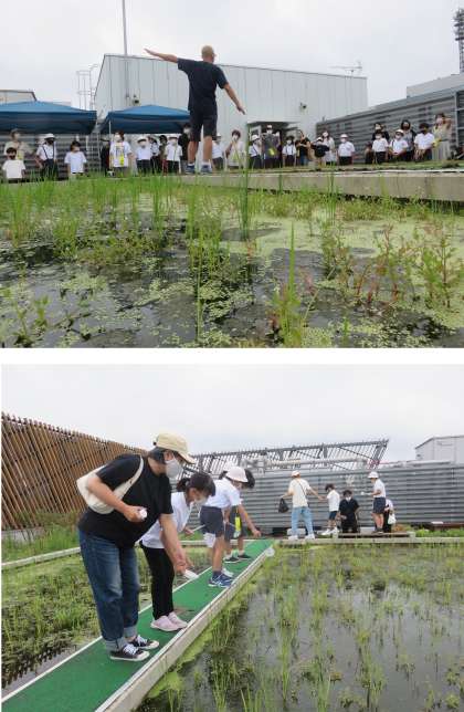屋上の水田は、例年に比べると稲の生育が悪いそうです。