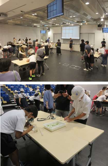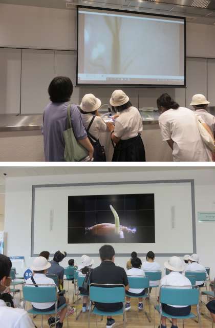 水田でつかまえてきた生き物を、さっそく顕微鏡などを使って見てみました。