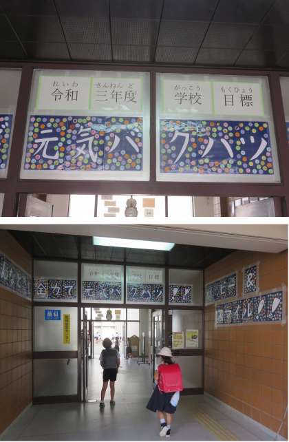 子どもたちが考えた『令和3年度 学校目標』を玄関に掲示しました。