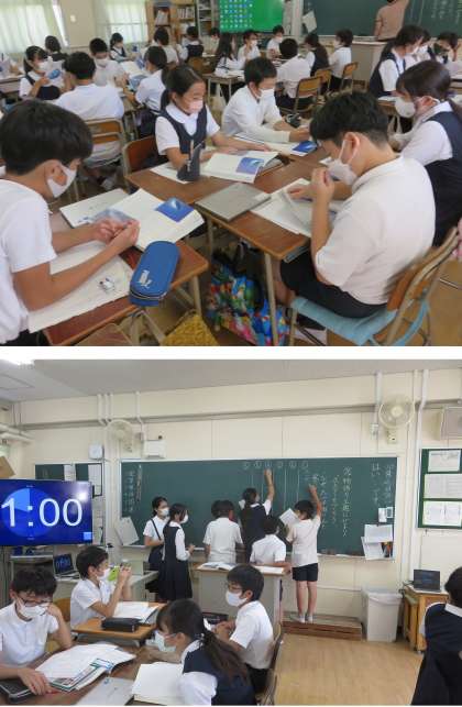 子どもたちが一人ずつじっくり考えたり、グループで相談した意見を聞き合いながらまとめていました。