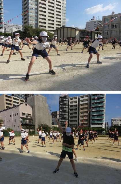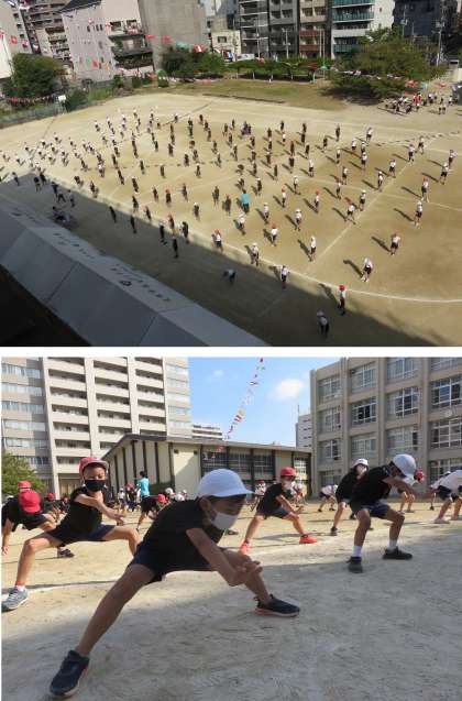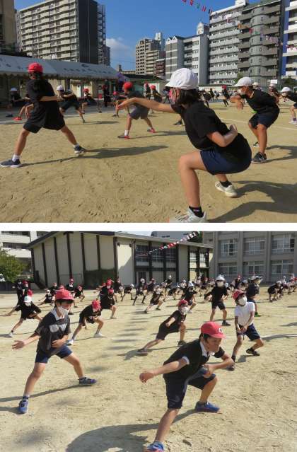 5年生が、運動場で『ソーラン節』の練習をしていました。