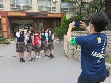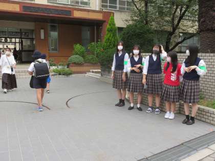 今週、西高の方が校門に立って、子どもたちの登校を見守りしてくれることになりました。