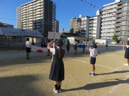 今日は、代表の子どもたちに朝早く学校に来てもらい、開会式の練習をしました。
