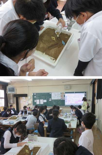 みんなで協力して手際よく準備をし、実験のまとめをすることができていました。