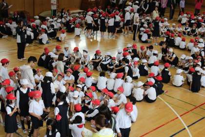 今日の児童集会は、ベストフレンド班活動をしました。ベストフレンド班活動とは、日吉小学校の縦割り班活動のことです。
