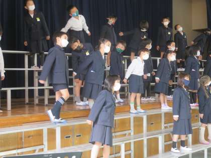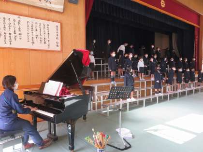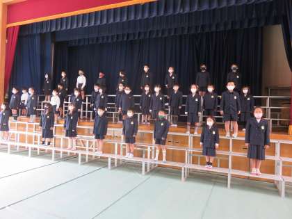 国語で習った「おとうとねずみチロ」を、気持ちが伝わるように群読劇を行い、最後に「ありがとうの花」を全員で歌います。