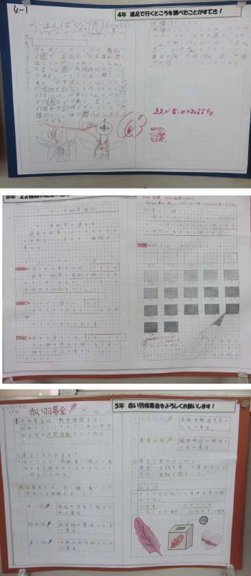 遠足に行く場所を調べたり、鉛筆の種類を調べたり、学校で取り組んでいる「赤い羽根募金」について調べたノートもありました。