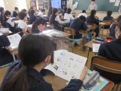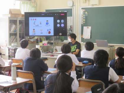 例年は多目的室などで、学年を集めて実施していたのですが、今年はTeamsを使ってオンラインで各教室に配信する形で行いました。