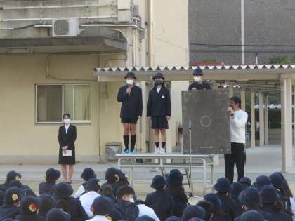 今日の朝会では、先週の『学習発表会』でがんばったことやよかったことの話をしました。