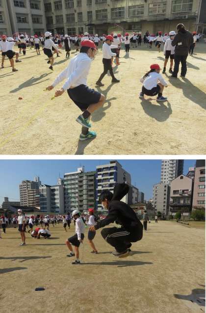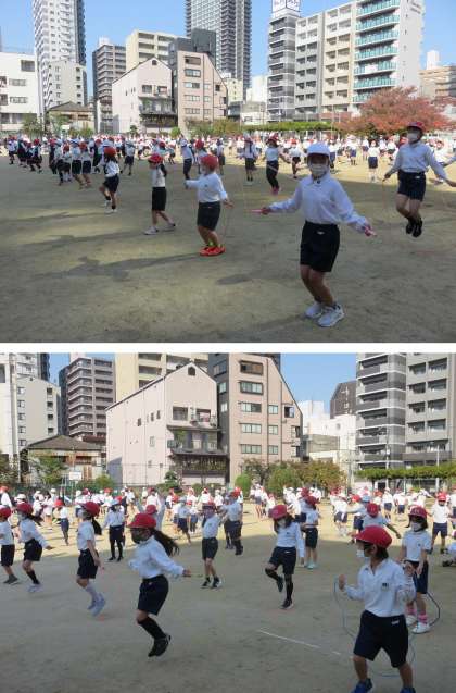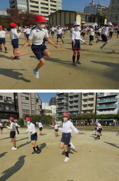 20分休みには、2学年ずつ運動場で「なわとび集会」をして、その他の休み時間にもできるだけ目標を決めて、なわとびの練習をしていきます。