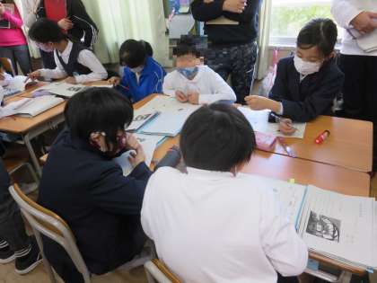 その豆太の気持ちを、グループごとに話し合って発表していました。