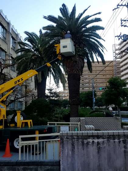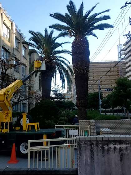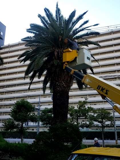 フェニックスはとても高い木で枝も堅いので、管理作業員さんで行うことできません。