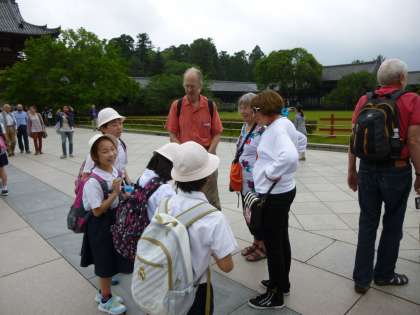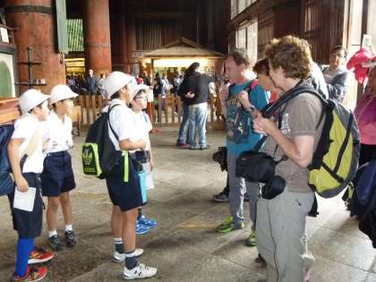 週に一度英語を勉強している5年生。奈良に観光に来た外国人に「Where are you from?」と話しかけて会話をしました。英会話にプラス度胸もためされたかな。