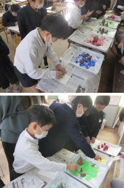 2年生が『いも版画』をしていました。