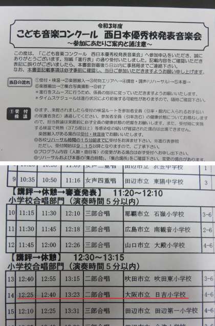 明日は、合唱部が『こども音楽コンクール 西日本優秀校発表音楽会』に参加します。