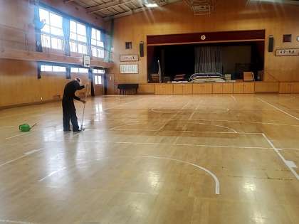 日頃、床の清掃はしていますが、業者の方はラインの剥がれた後なども丁寧に磨いて掃除をしてくれました。きれいに床を清掃した後、ワックス掛けを2回行いました。