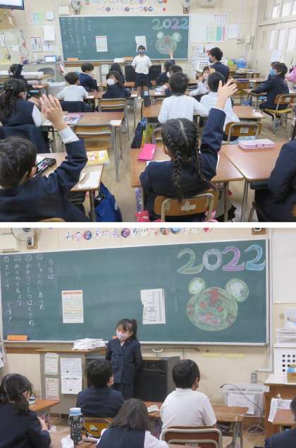 いろんな冬休みの思い出の話をクラスで発表したり、3学期の係活動を決めたりしているクラスもありました。