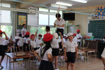 明日は、子どもたちは、赤白帽をかぶり水とうを持って、いつもの登校時間に講堂に集合です。