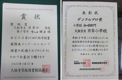 学校にも、今年度子どもたちががんばったあかしの賞状がいっぱい届いています。