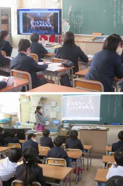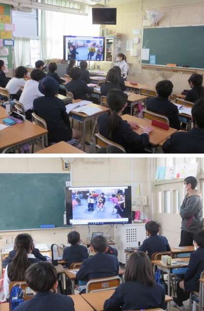 今日の児童集会では、ブランバンドクラブと合奏クラブの発表を、オンラインで各教室に配信しました。