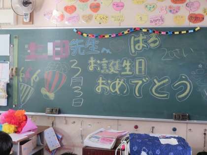 最後の写真は、先生の誕生日をお祝いするメッセージが書かれていたので、思わず撮りました!