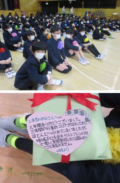 今日は、全校集会『卒業おめでとう集会』を行いました。