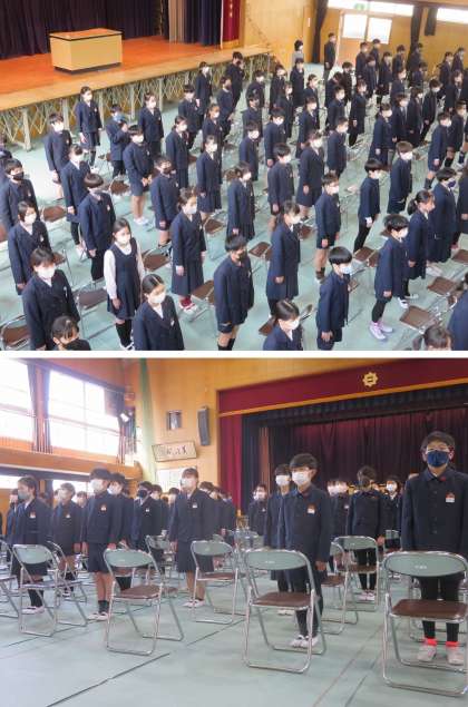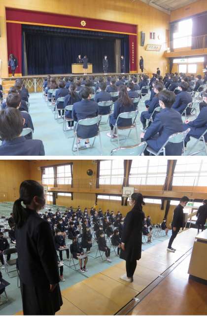 今年の卒業式では、証書をもらった後に、その場で回れ右をして『別れのことば』を全員で言います。