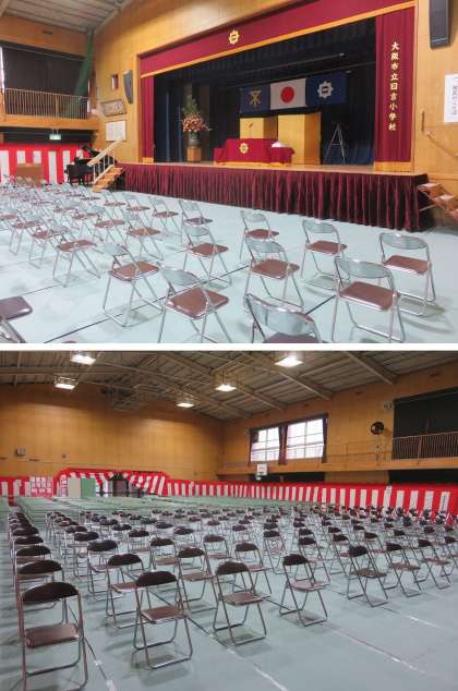 今日は、午後から5年生だけが残って、教職員と一緒に卒業式の準備をしました。