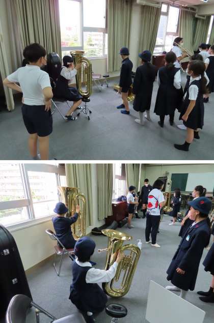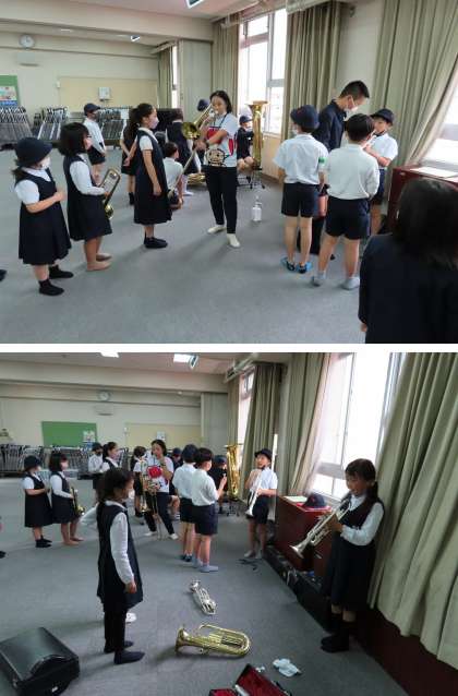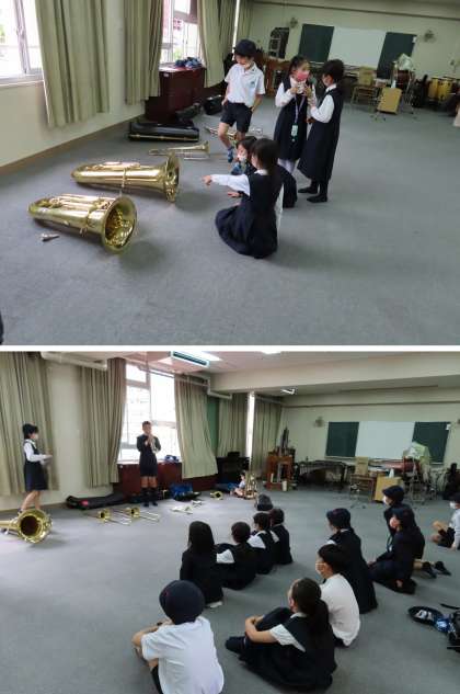 昨日の放課後、ブラスバンドクラブが、多目的室で4年生を対象にした『体験会』を開きました。