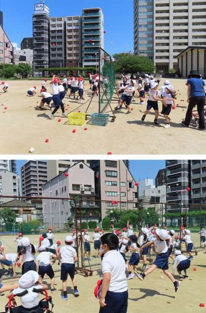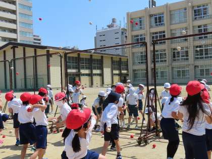 運動場では、2年生の子どもたちが『玉入れ合戦』をしていました。